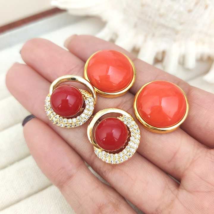 Lunette ronde en pierre au design étonnant Boucle d'oreille en pierre précieuse de corail orange naturel plaqué or 18 carats Fabricant de bijoux fins pour femmes