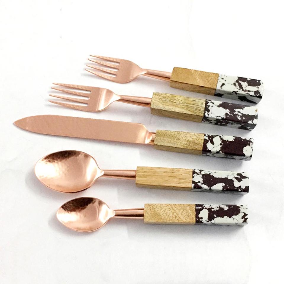 Ensemble de couverts plaqué argent au design étonnant avec manche plat poli miroir pour la rentrée des classes-ensemble cuillère couteau fourchette