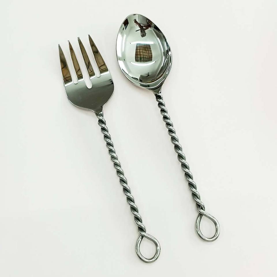 Cuillère et fourchette de service à salade polies argentées de haute qualité, ustensiles de service, couverts à poignée carrée