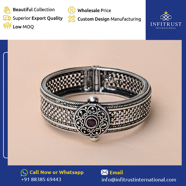 Offre incroyable sur Top Qualité Minimaliste Jali Travail Rubis Pierre Clouté Oxydé Argent Antique Fabriqués à la Main Vêtements pour Femmes Bracelets