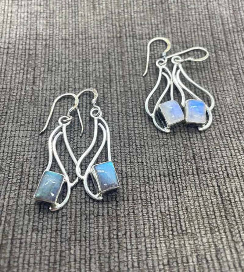 Amazing Renewal Pyramid Moonstone 8X12mm Sterling Silver Gold Vintage IGI Certified Dangle Earring Engagement Wedding Gift Party