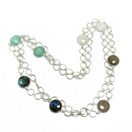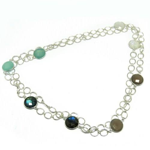 Incroyables colliers en argent Sterling 925 de forme ronde Multi pierre, exportateur et grossiste bijoux en argent uniques