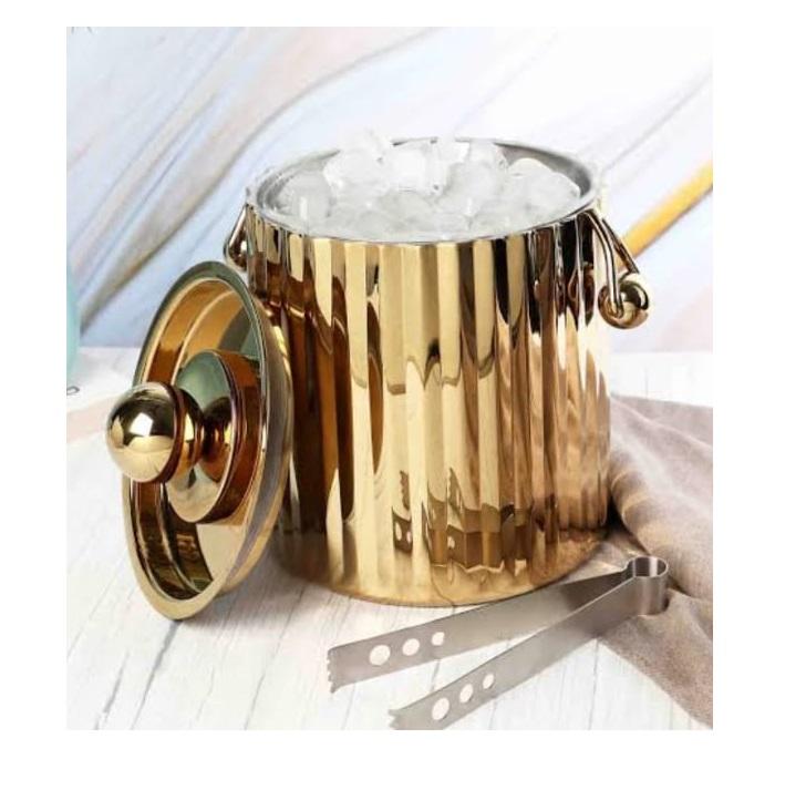 Bac à glace isotherme en acier inoxydable plaqué argent, style élégant, pour boissons froides et vin, idéal pour les fêtes, pinces incluses