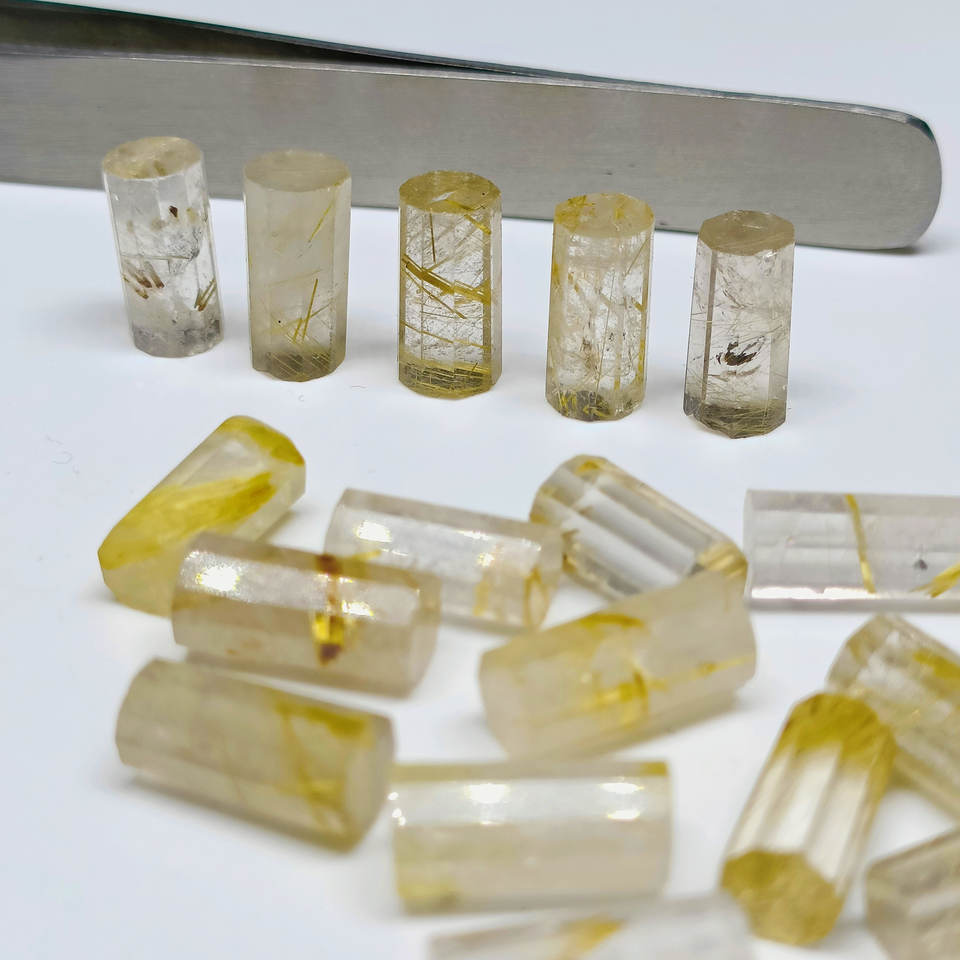 Texture étonnante forme unique 100% naturel rutile doré forme de tuyau à facettes pierre précieuse en vrac prêt à expédier prix de gros pierre précieuse