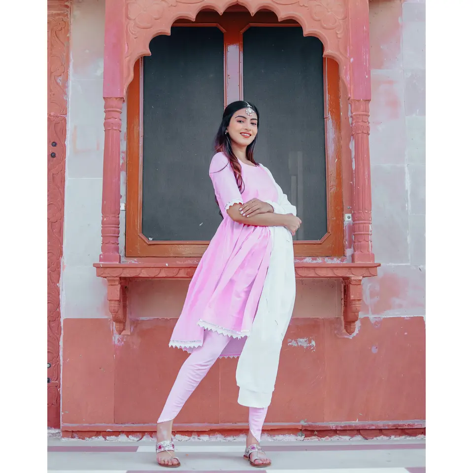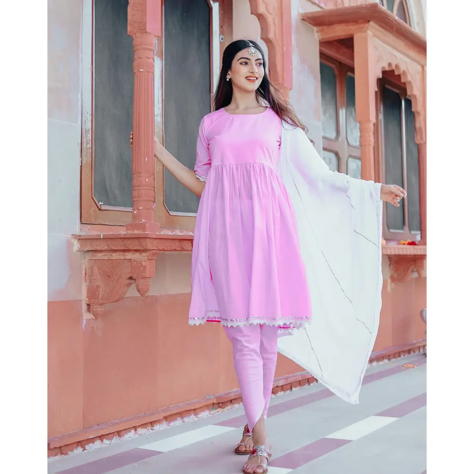 Ensemble Anarkali en rayonne rose tendance incroyable par Thread & Button (tailles XS-5XL) été Inde