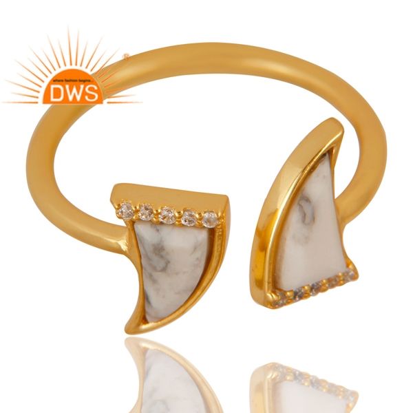 Superbe bague en howlite blanche sertie clos, plaquée or 14 carats, en argent sterling 925, bijou tendance pour soirée