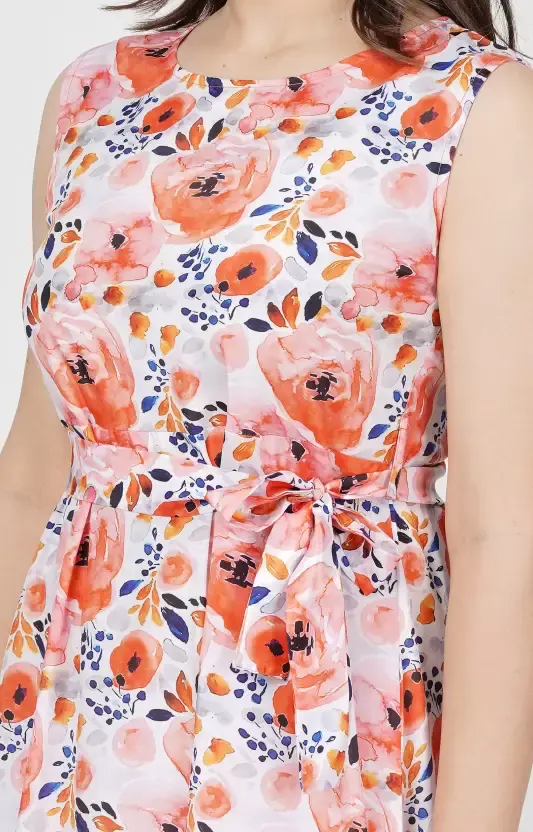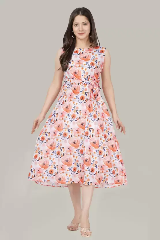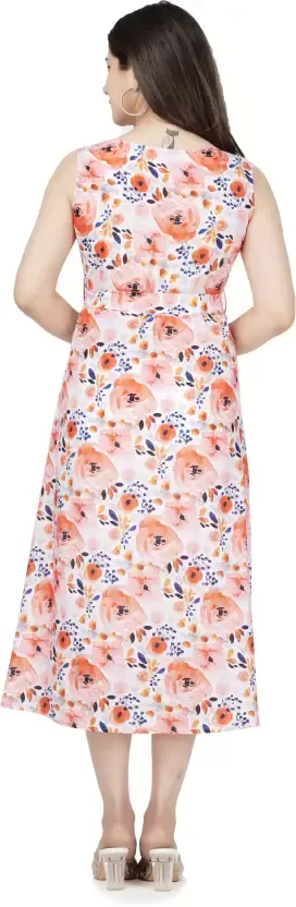 Elegant Women's A-Line Dress High Waist Floral Multicolor Print Natural Waistline Woven Wedding Party Wear for Girls