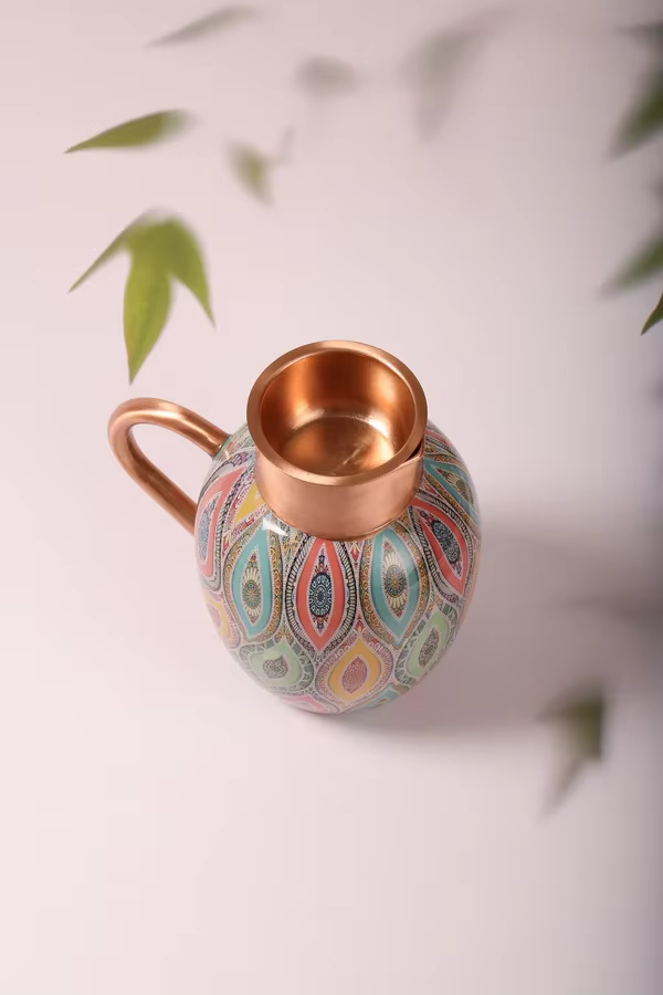 Carafe en cuivre incroyable avec couvercle à double paroi, étanche, grande capacité, reflète les traditions anciennes de l'équilibre, de la pureté et de l'harmonie