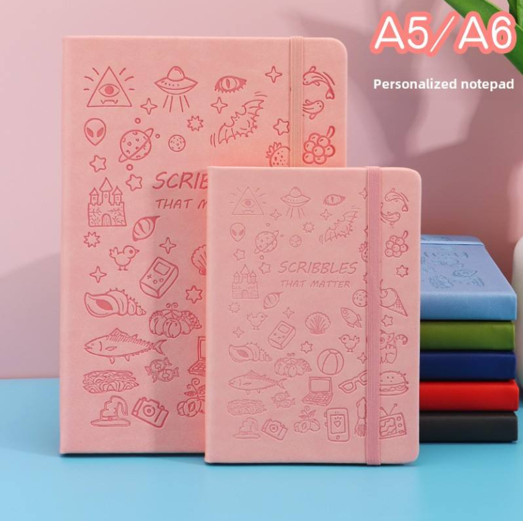 Cahier de notes A6 à couverture rigide pour étudiant A5 A4 tailles dessin animé estampillé cuir couverture sangle fil couture reliure pour cadeau