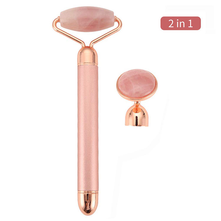Amazon Chaud 2 EN 1 Rose Quartz Visage Anti-Vieillissement Thérapie Faciale Masseur Électrique Vibrant Rouleau de Jade