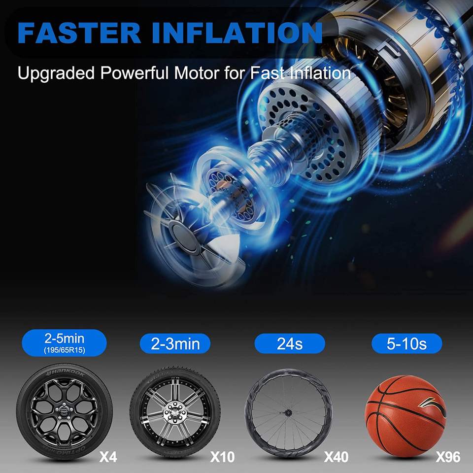 Emergency Light, Tire Pressure Monitor, Power Indicator, Portable, Automatic Shut Off, fast inflate