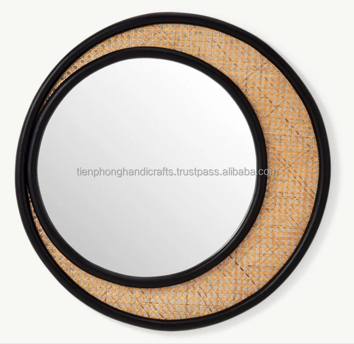 Amazon Hot Rattan Round Wall Mounted Rattan Mirror for Home Decoration Made in Vietnam