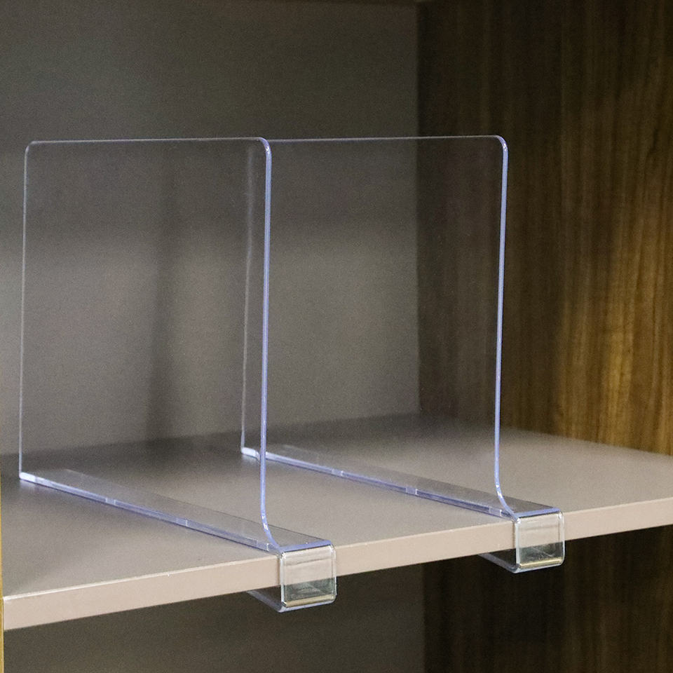 Amazon Offre Spéciale Séparateur de placard Séparateur d'étagères en plastique Déflecteur de séparation en acrylique pour l'organisation de placard Séparateur d'étagère transparent