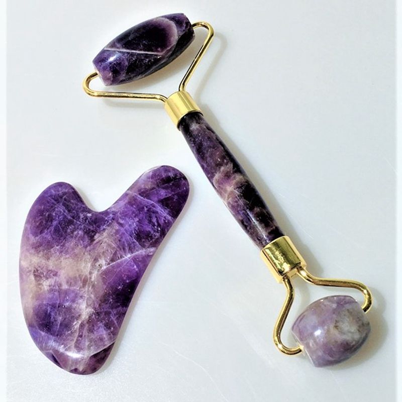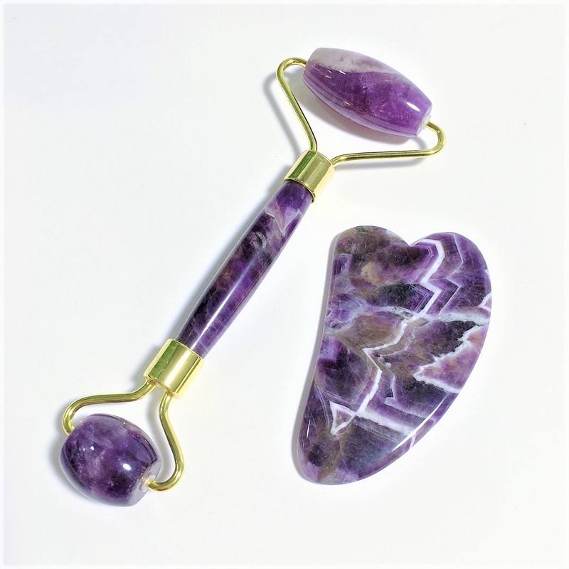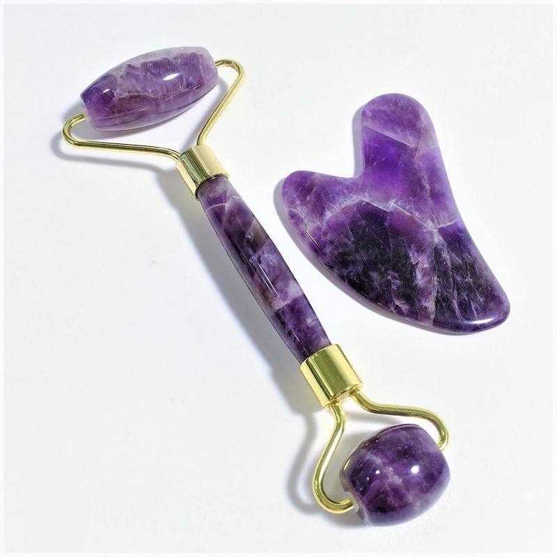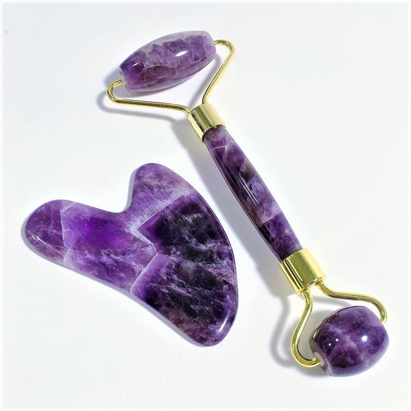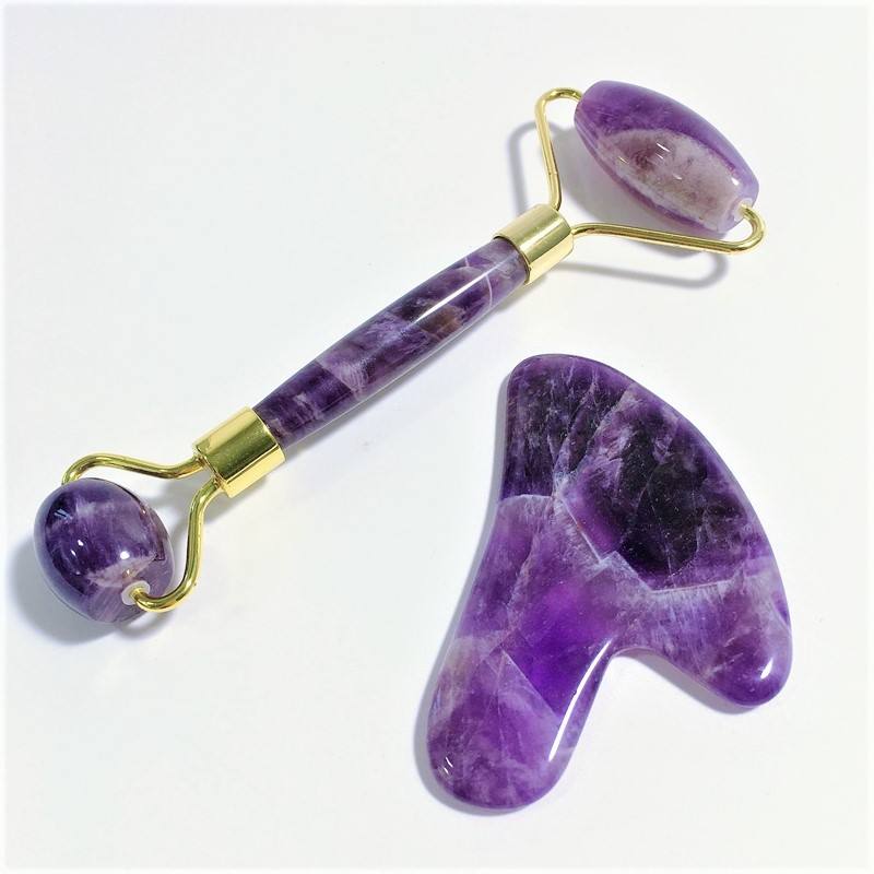 Améthyste rouleau et coeur forme gua sha ensembleMatériel
