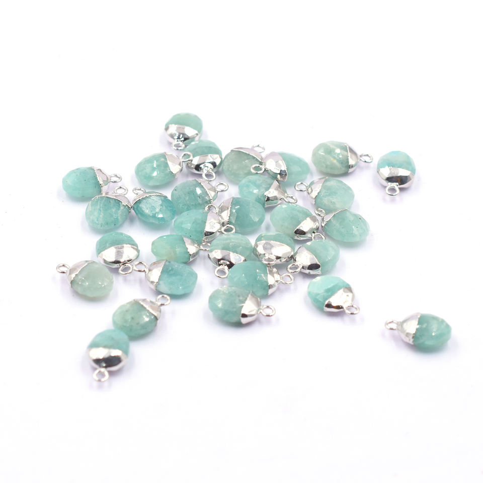 Pendentif ovale en amazonite de 12 à 14 mm plaqué argent avec bélière, pierre précieuse naturelle, accessoires de bijouterie pour la création de bijoux