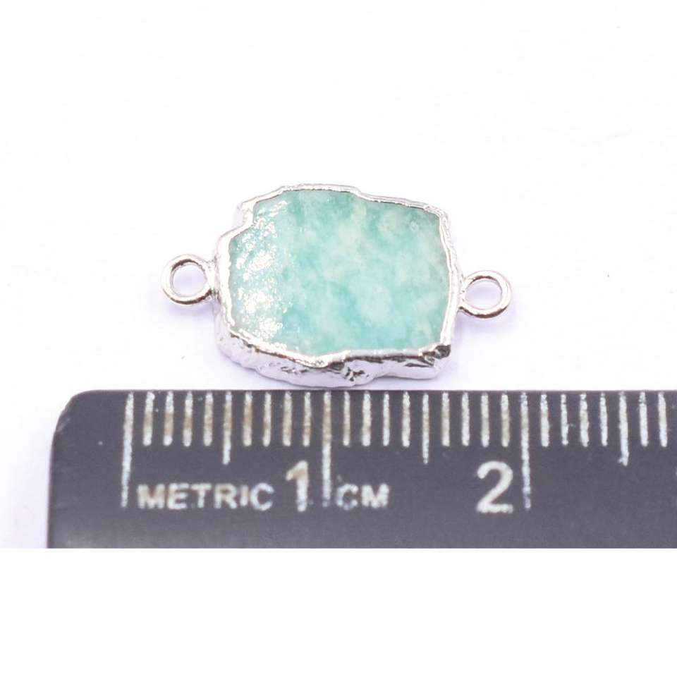 Amazonite Rectangle Shape Silver Plated Connector