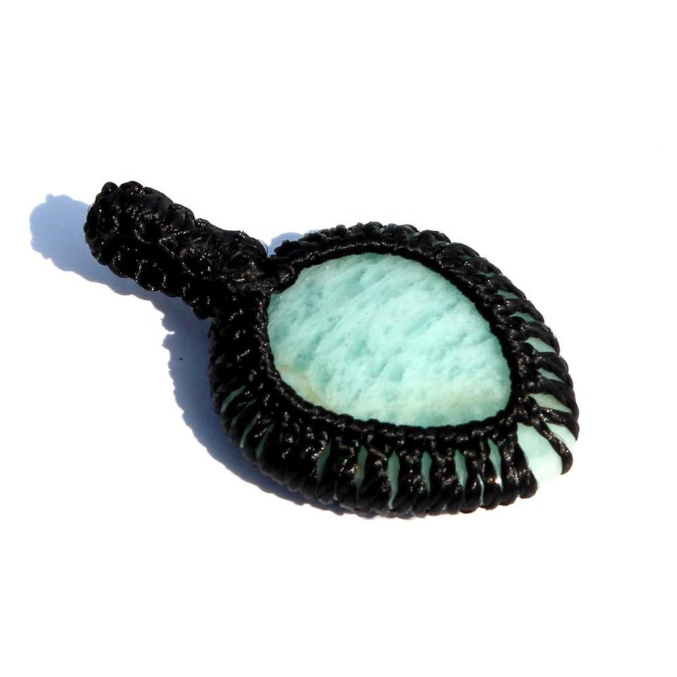 Amazonite pierre précieuse Cabochon pendentif bohème macramé cordon enveloppement hindouisme cristal pierres de guérison forme de coeur Piedras Naturales
