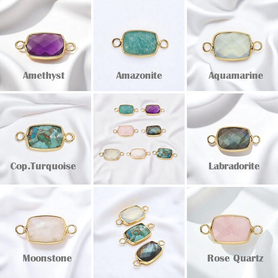 Amazonite pierre précieuse forme rectangulaire breloque à facettes double bélière connecteurs bijoux faits à la main bijoux personnalisés breloques en gros