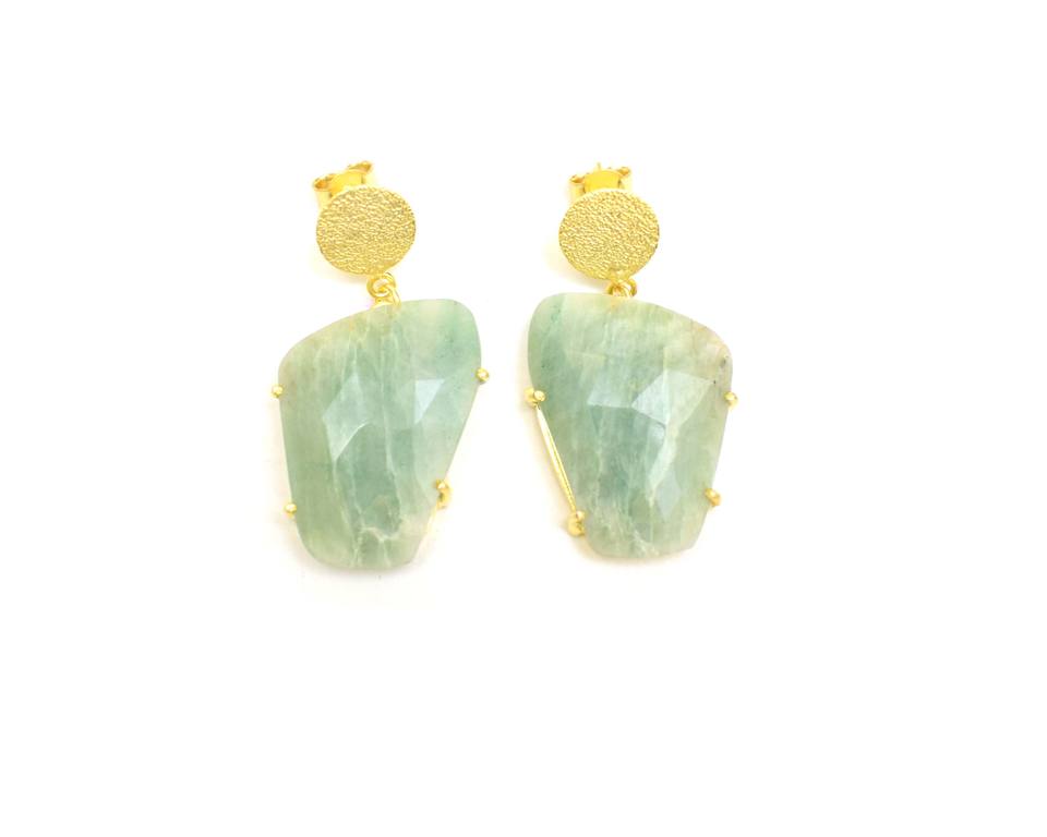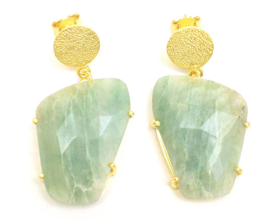 Boucles d'oreilles clous tendance en amazonite naturelle, plaquées or, taillées à facettes, forme naturelle, pour femme, idéales pour les fêtes, cadeau de mode, beauté naturelle