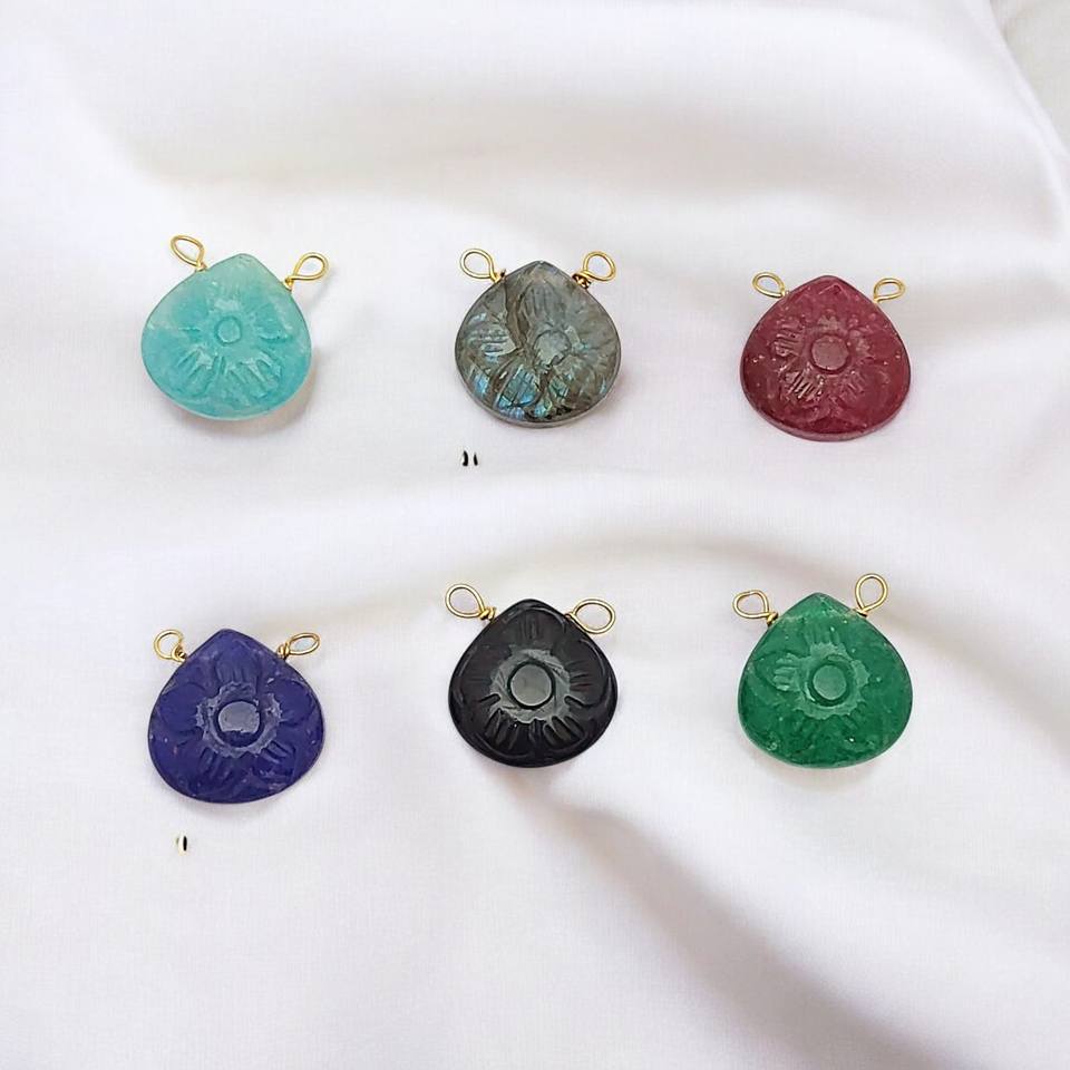 Nom du produit:Pendentif enveloppé de fil de sculpture de fleur de pierres précieuses