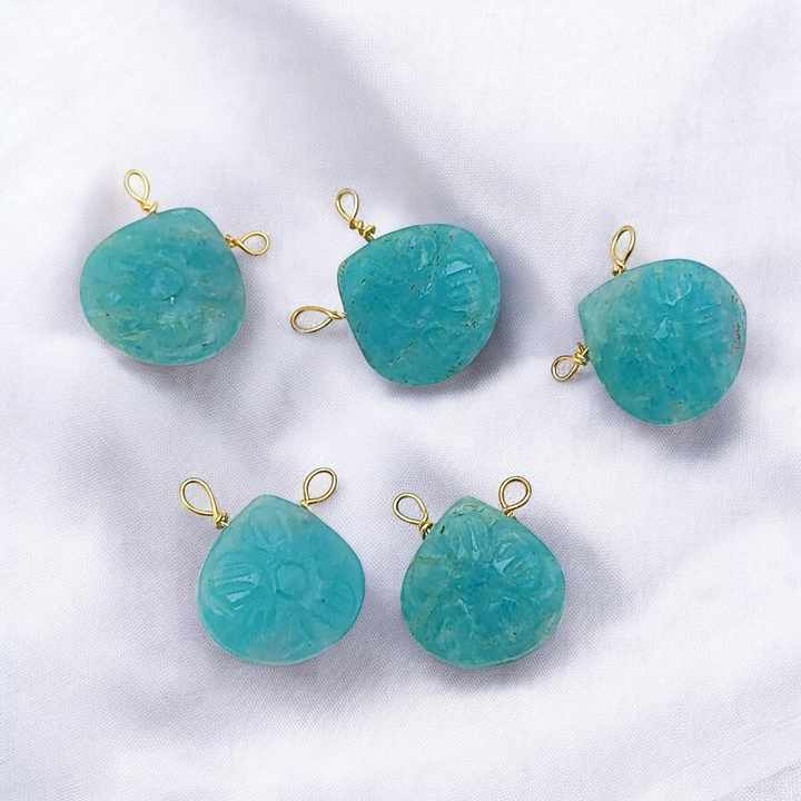Pendentif Amazonite en forme de coeur en forme de fleur sculpté en argent sterling 925 plaqué or fil enroulé Amazonite breloques en vrac cadeau pour elle