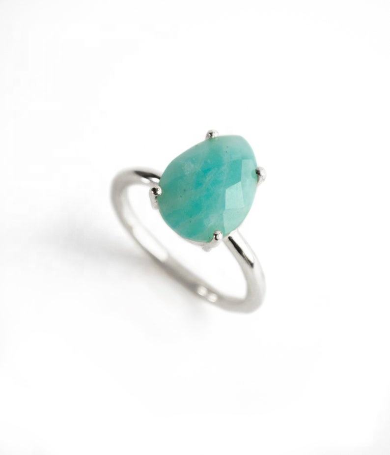 Nom du produit:Amazonite Larme Forme Prong Set Or Vermeil Anneau