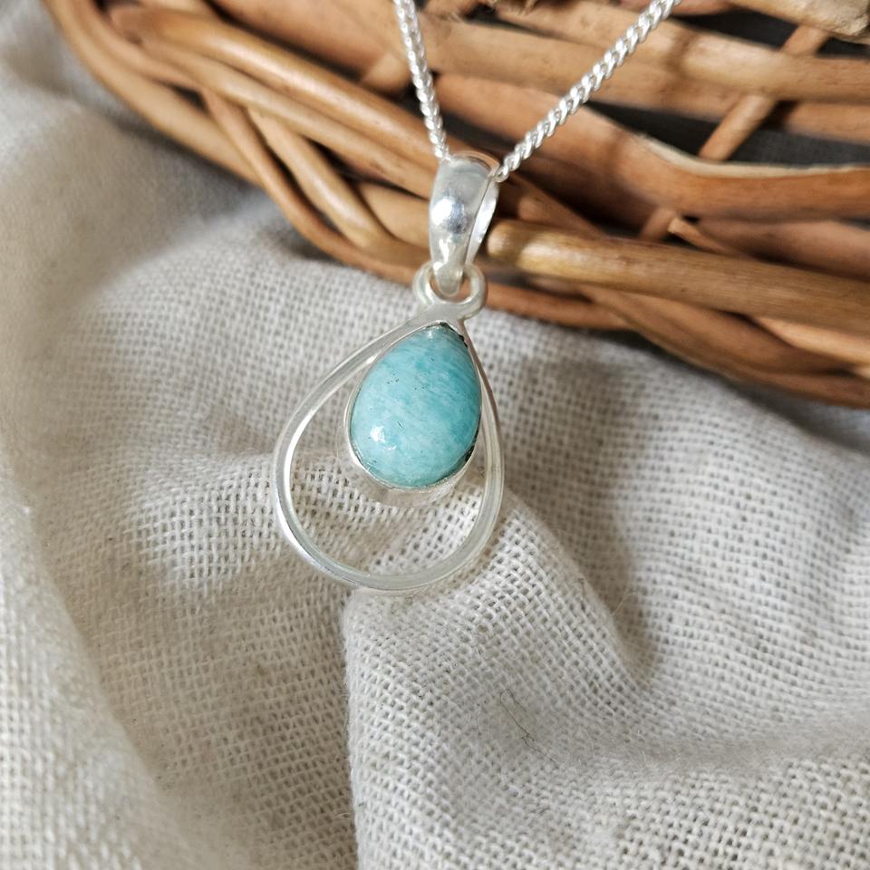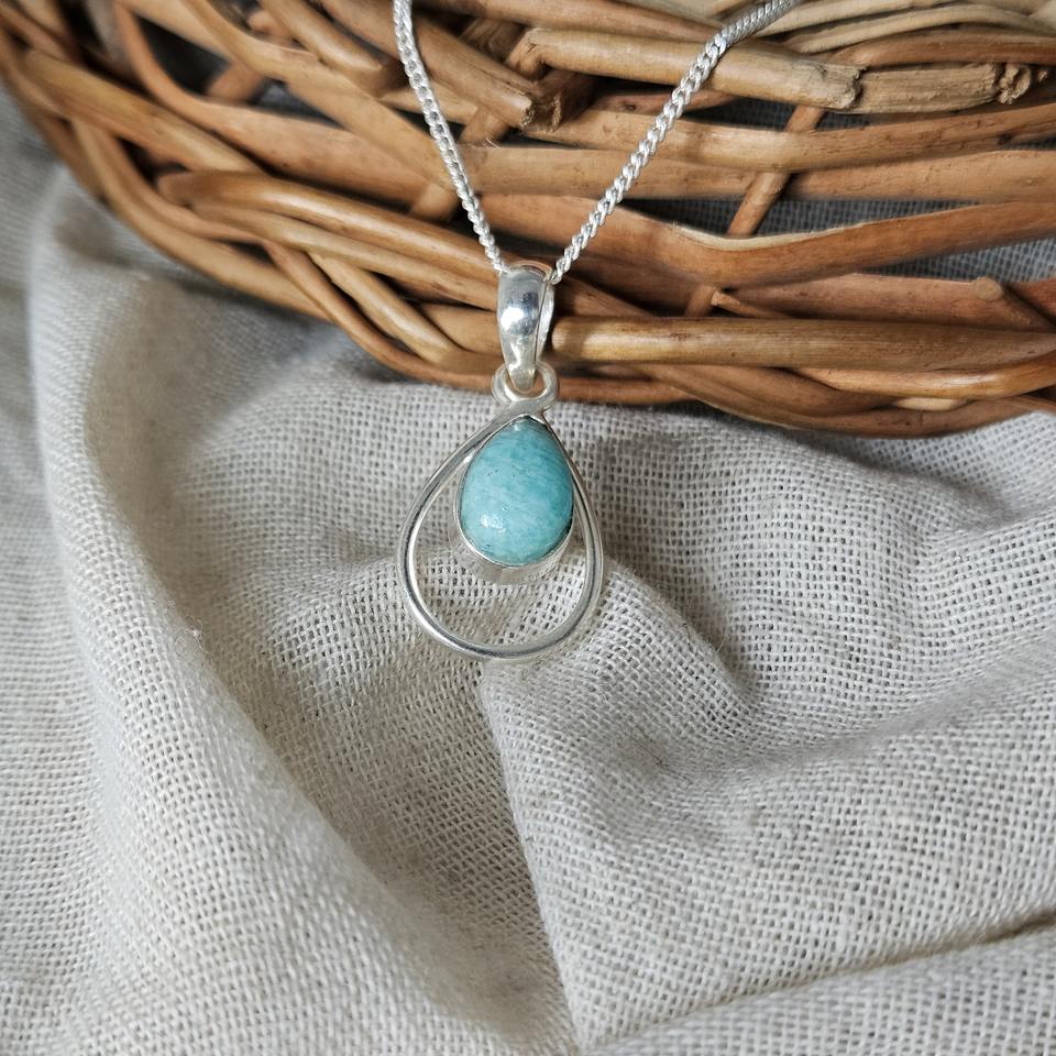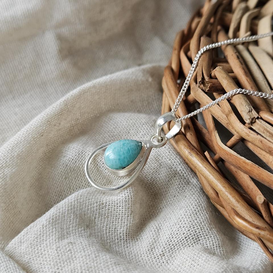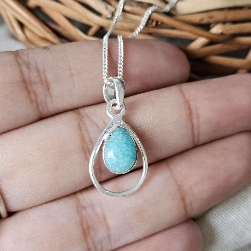 Pendentif en argent sterling léger en forme de goutte d'Amazonite, design mignon et massif