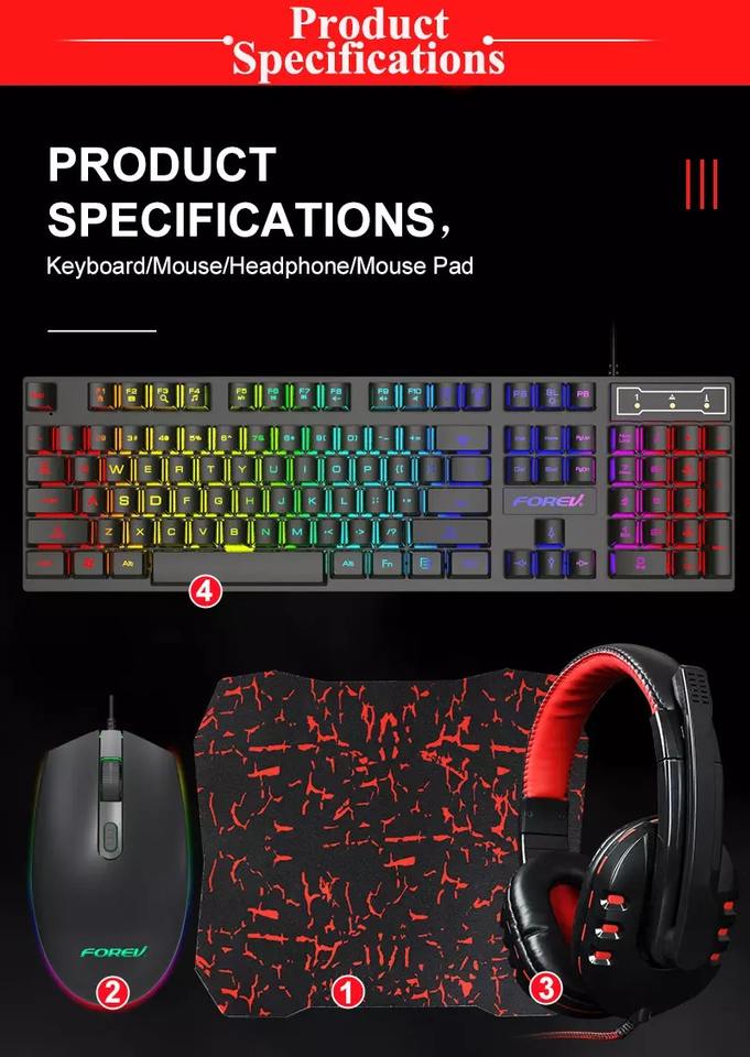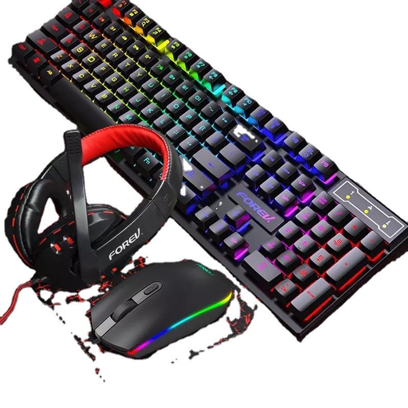 Amazons Hot FV-Q809 Keyboard Mouse Headset Mouse Pad Four-piece Set Gaming Backlight Computer Keyboard and Mouse Combos