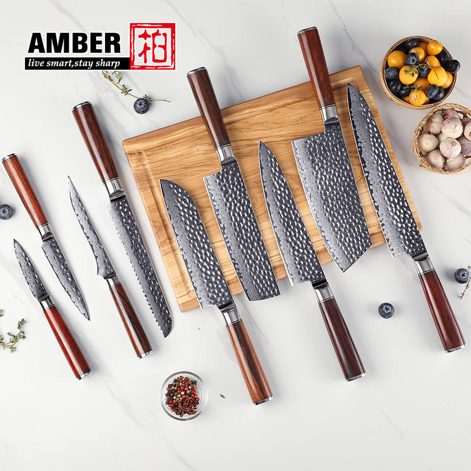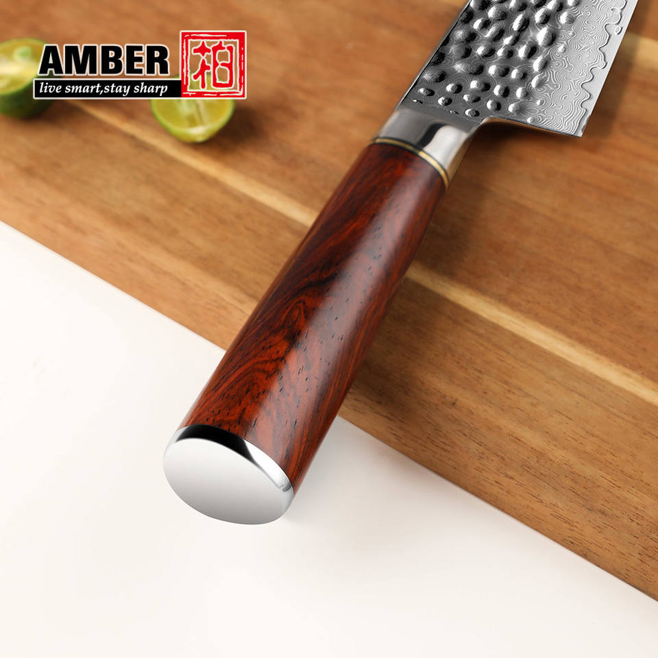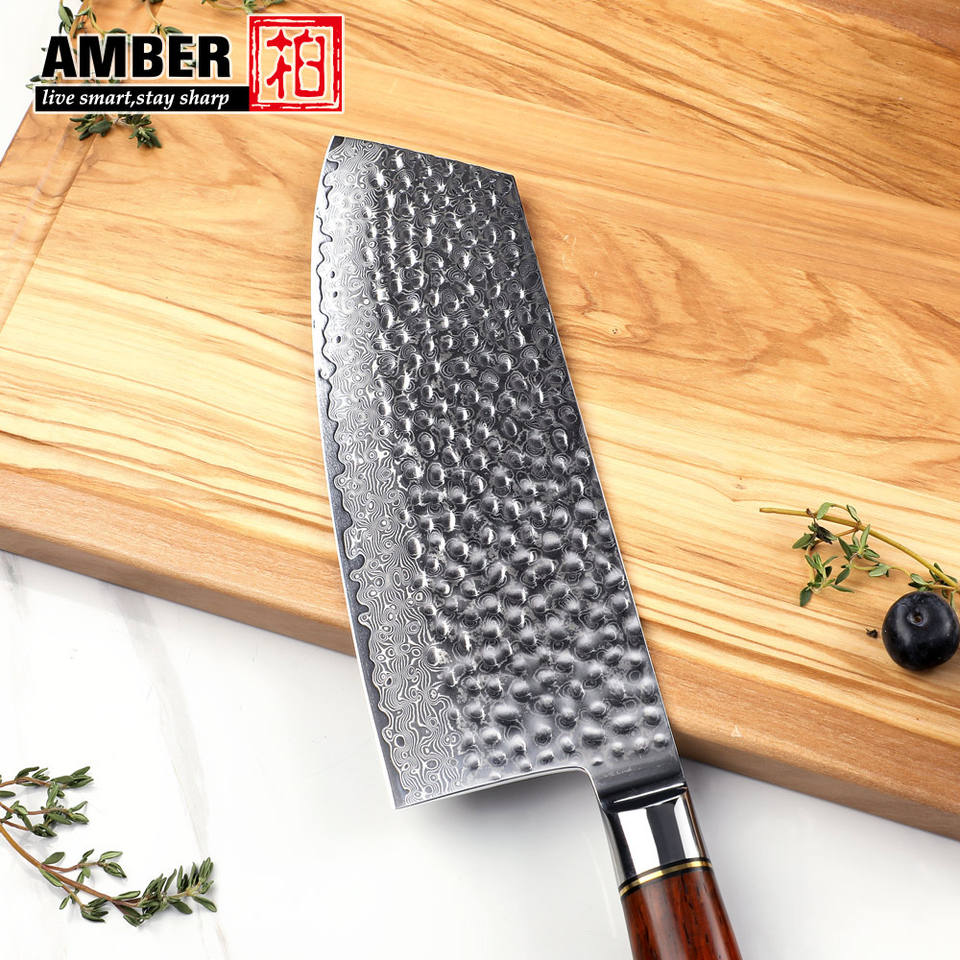 Couteau couperet chinois ambré de 7 pouces en acier Damas VG10 Grand couteau de cuisine Couteau à manche en bois