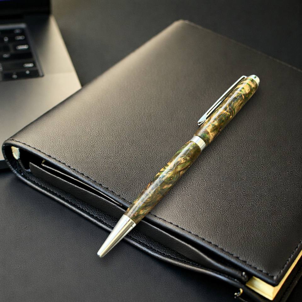 Collection Amber, stylo à bille en bois fait main de luxe, 0,7 mm, métal stabilisé, pour les affaires ou un mariage, en cadeau