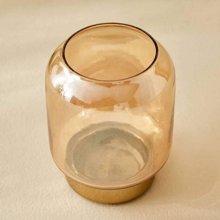 Porte-bougie chauffe-plat artisanal en cristal ambré, écologique et sans plomb, avec base en métal doré, décoration de table pour Noël et Pâques
