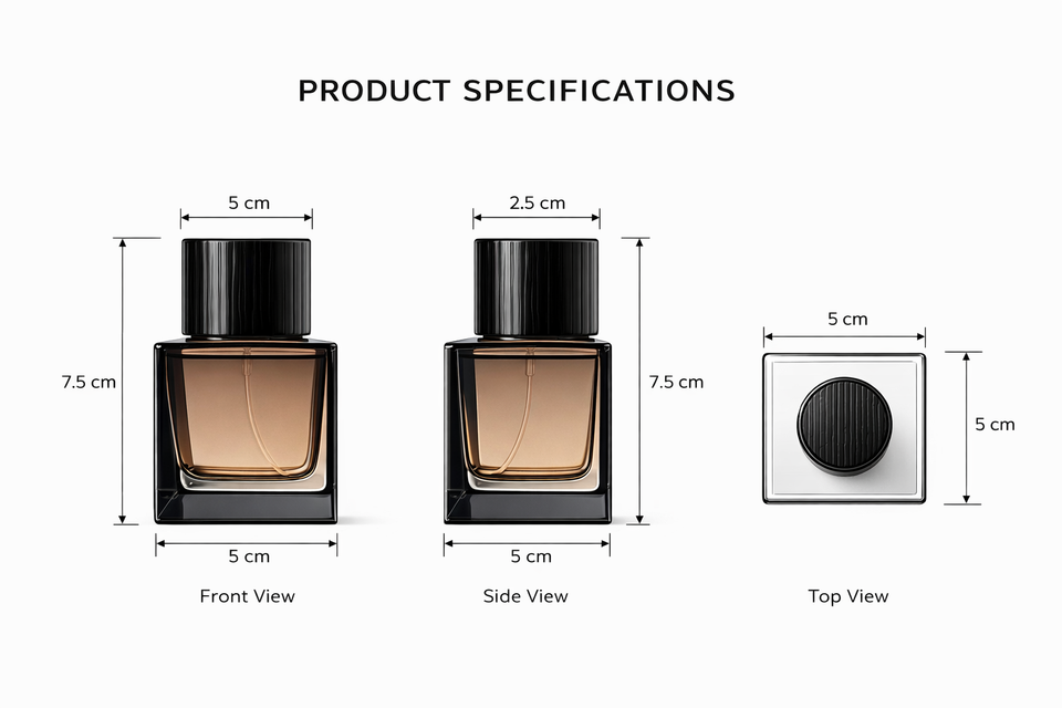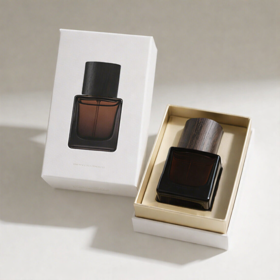Flacon de parfum personnalisé carré en ambre 50 ml, flacon de parfum en verre de luxe, flacon de parfum noir avec emballage/étiquette/bouchon