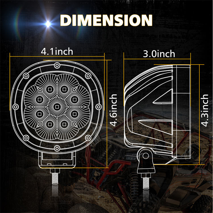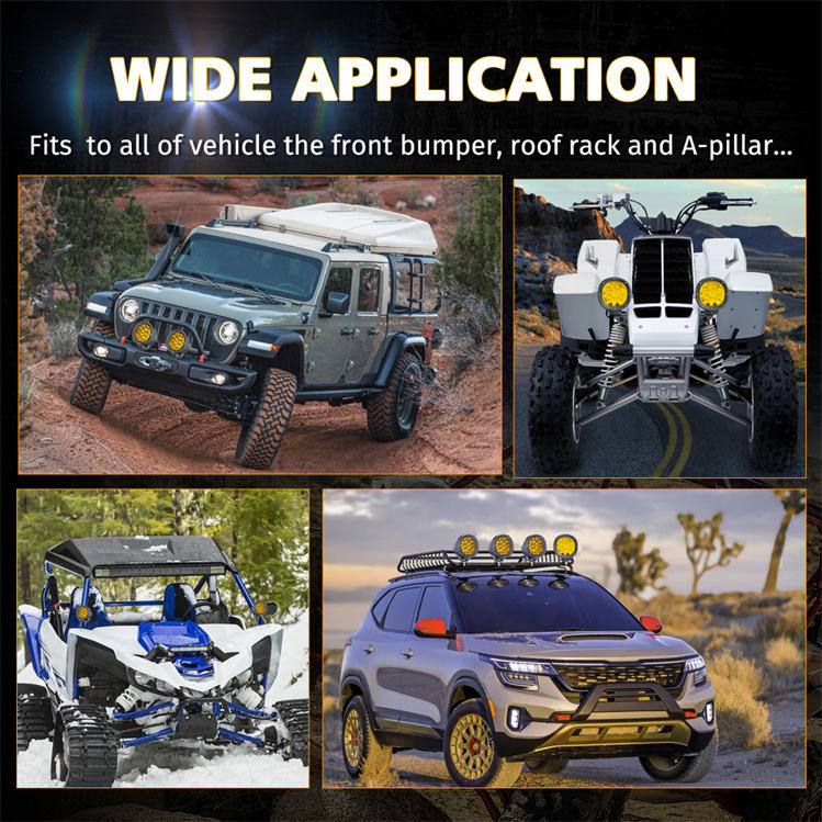 Feux de brouillard/phares de conduite LED 12V, couleur jaune ambre, lot de 2, 4 pouces, ronds, 90W, faisceau combiné spot/flood, hors route