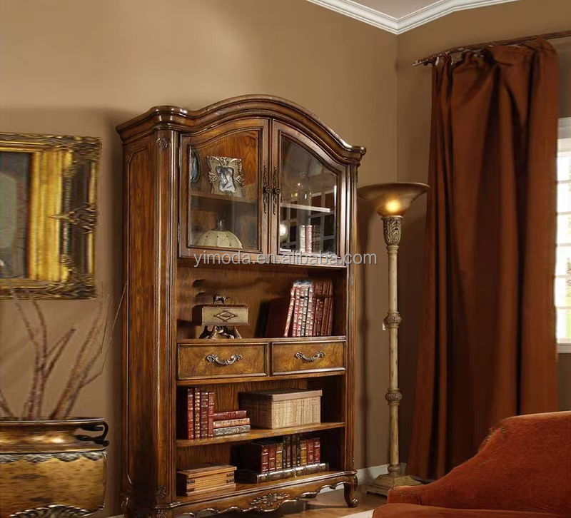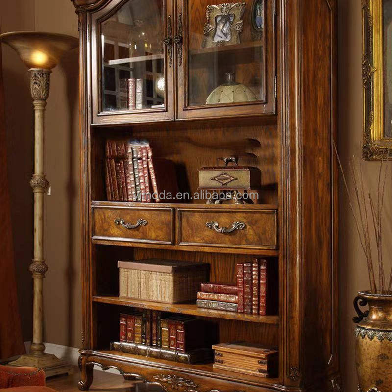 Design Style:New classical carved antique cherry wooden Office Furniture bookcase