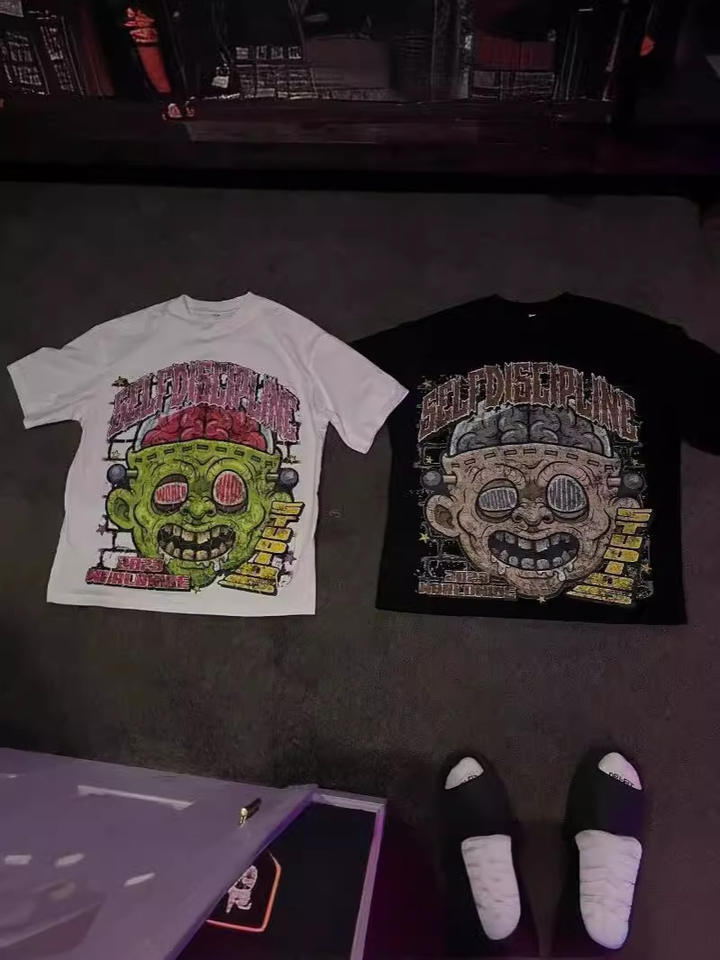 American Cartoon Graphic Silk Screen Printed Loose Fit Hostel Plaster Gothic T-Shirt Couple Y2k Korean Menswear