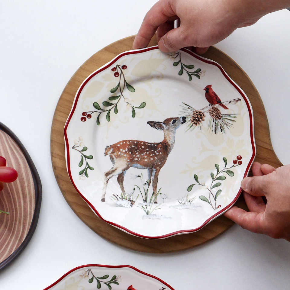 Assiette en céramique américaine Assiette plate rétro fauve Assiette petit-déjeuner 8 pouces Assiette décorative créative de Noël personnalisée Vente en gros