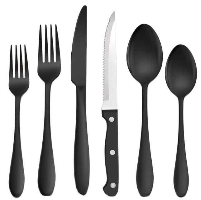 Ensemble de couverts écologiques en acier inoxydable de qualité supérieure, fabriqués à la main en Inde, couleur noire, logo personnalisé imprimé