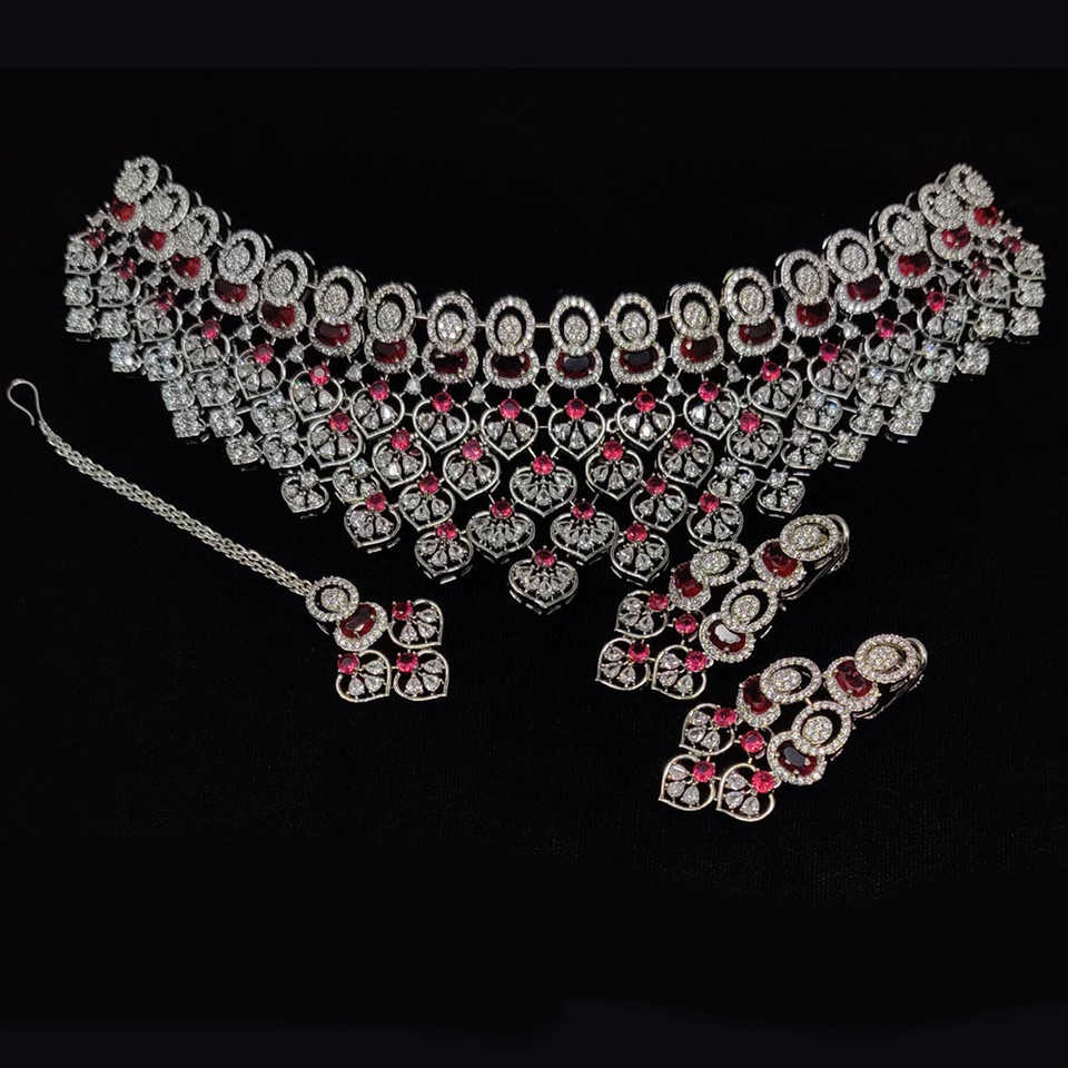American Diamond Choker Necklace Set Silver Plated 12091292DP Elegant Fine Jewelry