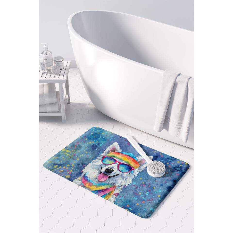 American Eskimo Hippie Dawg Memory Foam Bath Mat Machine Washable Anti-Fatigue Kitchen Rug Comfort Cushion in Kitchen & Bath
