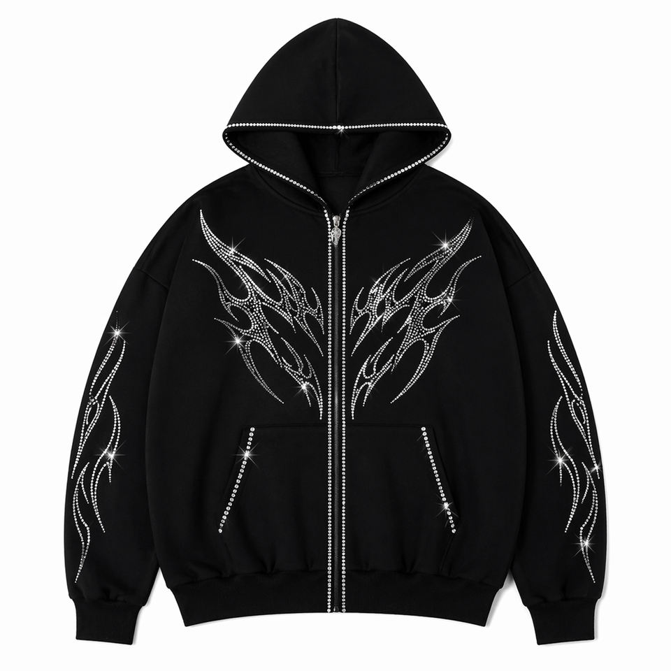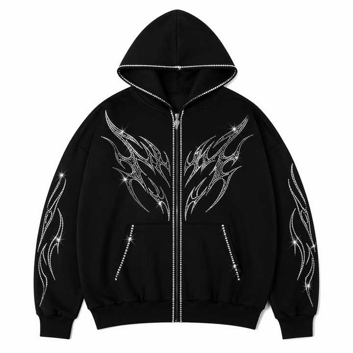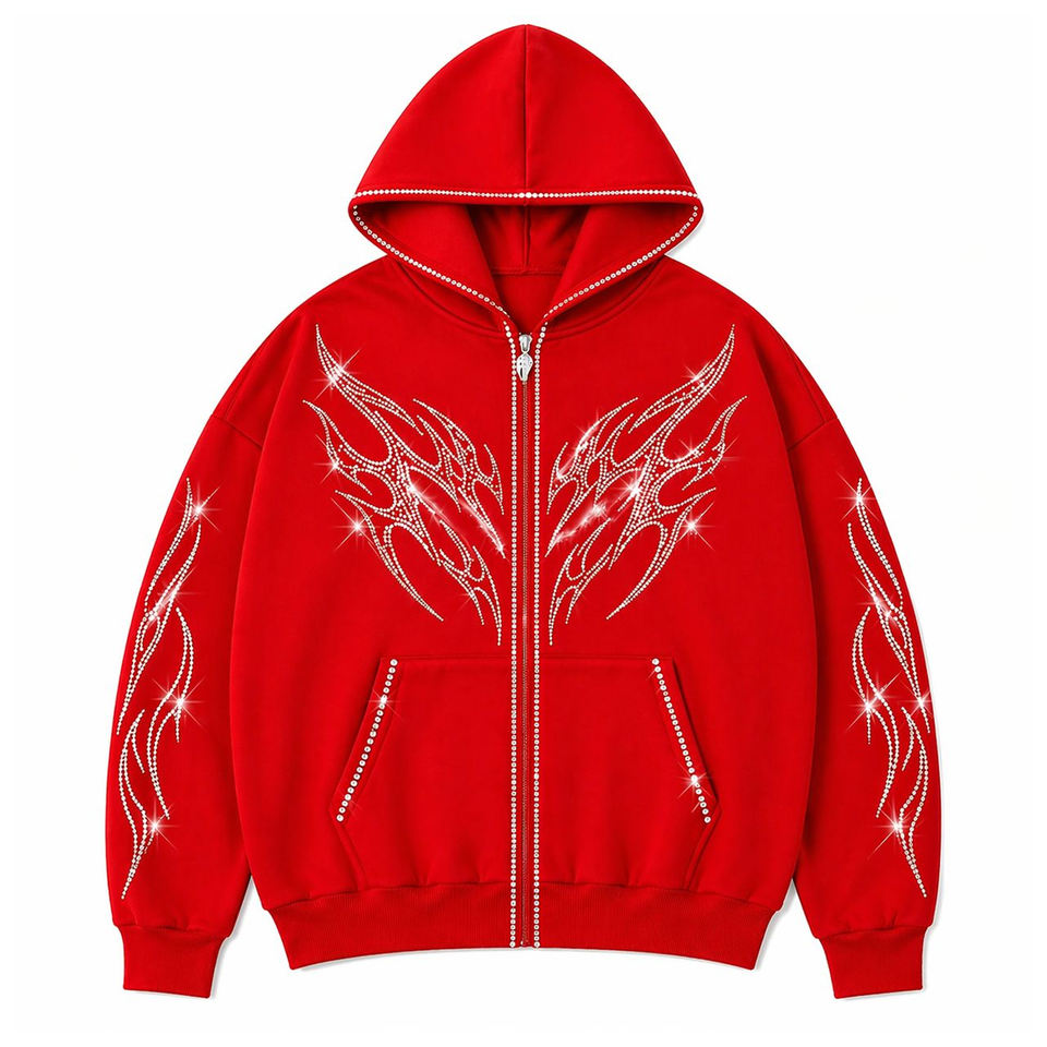 Sweat à capuche zippé American Fit avec strass – Pull en polaire premium style baseball avec poches et logos brodés – Commandes en gros OEM