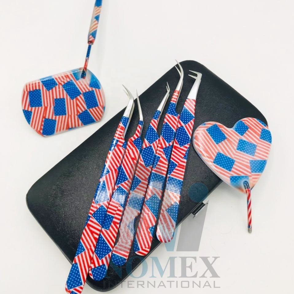 Drapeau américain Impression papier Cils Beauté et outils Acier inoxydable Marque privée Extension de cils Pince à épiler et miroir de cils
