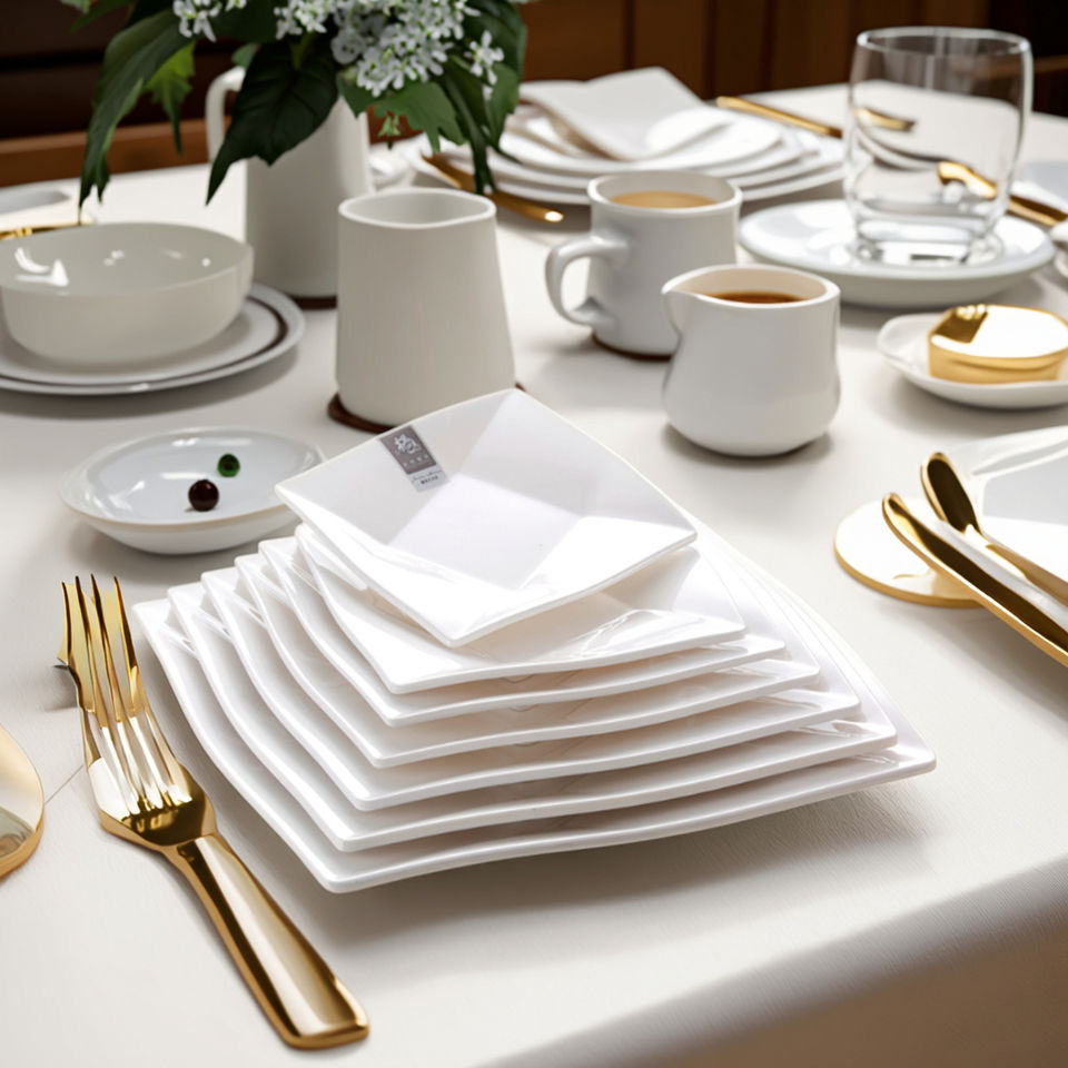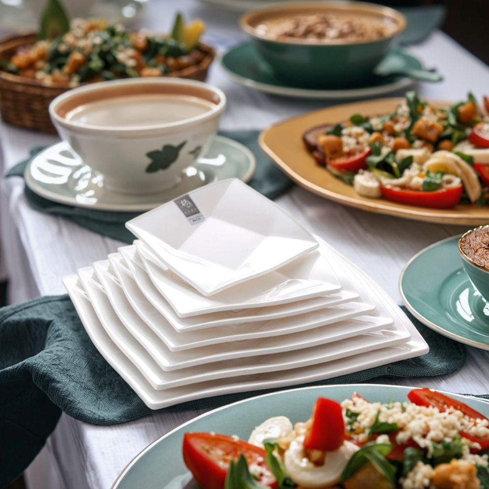 Assiettes de buffet carrées en mélamine blanche de haute qualité, vente chaude américaine