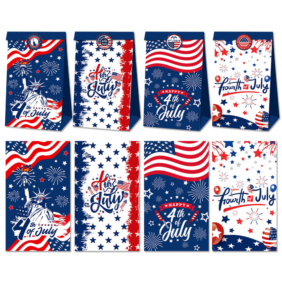 Jour de l'Indépendance américaine Sacs d'emballage suspendus décoratifs thème fleurs bonbons collations avec autocollants d'étanchéité Articles de fête