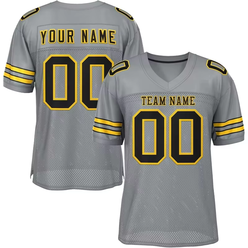 Maillot de football américain rétro d'été respirant imprimé à manches courtes personnalisé par sublimation 100% polyester