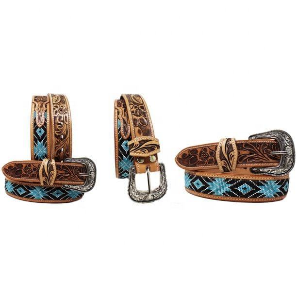 Ceinture en cuir américain Cowboy Designer Beaded Belt Western Bling Luxury Belt Premiom Cow Hide Floral Handtooled Ready to Ship Unisex