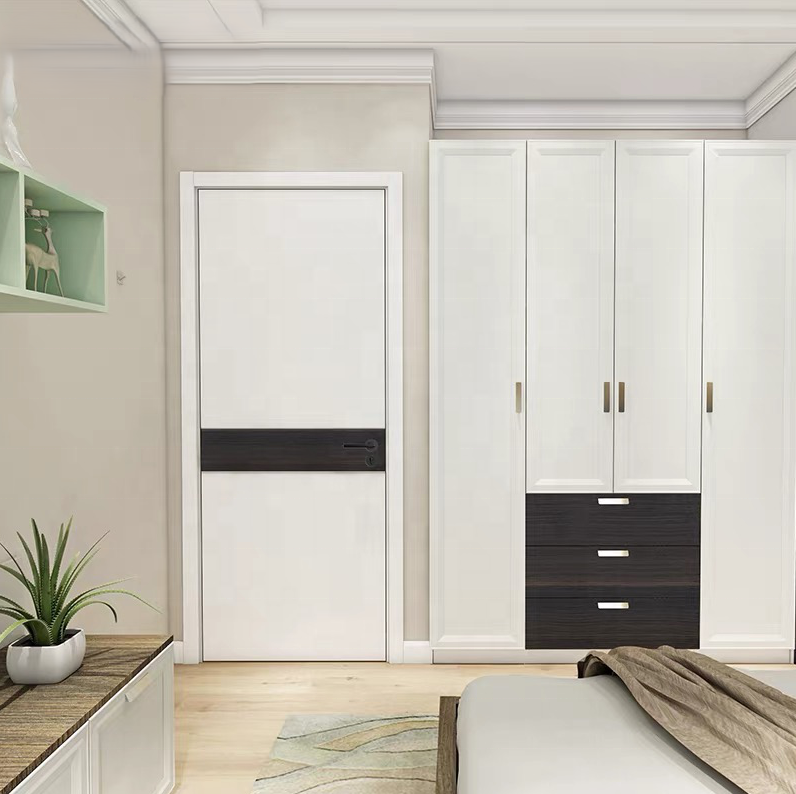 Portes intérieures pré-montées en bois composite WPC, style américain moderne, à âme creuse, insonorisées et étanches, pour appartement et chambre.