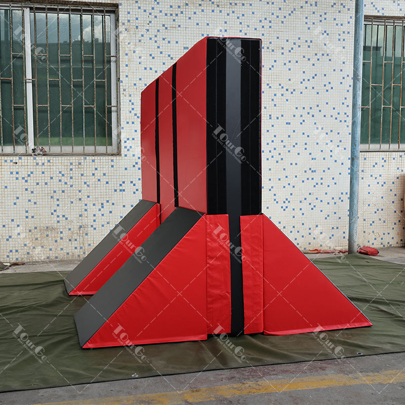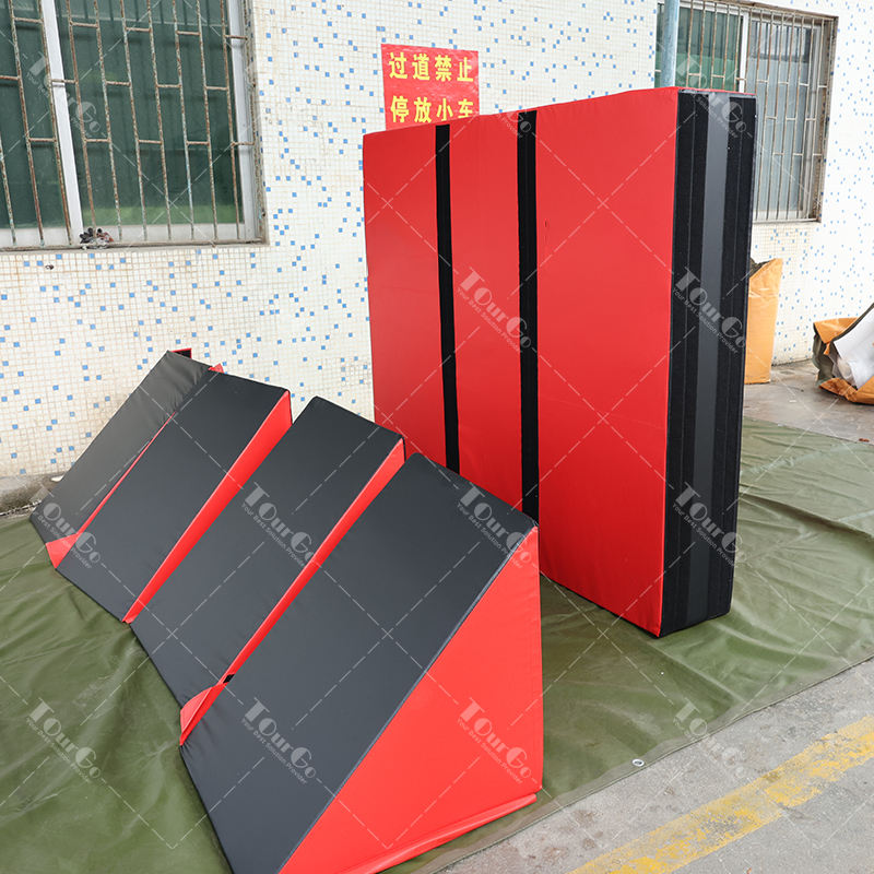 American Ninja Warrior Obstacle Course Gymnastics Kids Soft Play Equipment 5 Piece Set Road Block Wall Section with 4 Quad Step