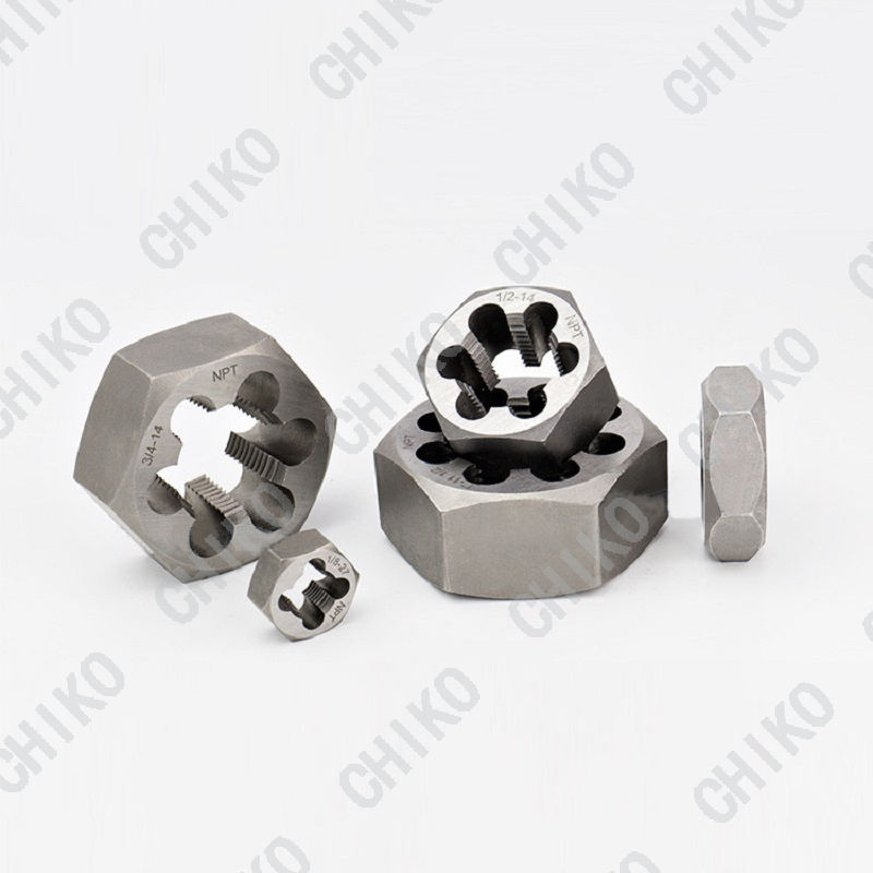 Filière hexagonale pour filetage américain NPT 1/16 1/8 1/4 3/8 1/2 5/8 3/4 1-2 pouces, filière conique pour tuyauterie NPS, filière hexagonale
