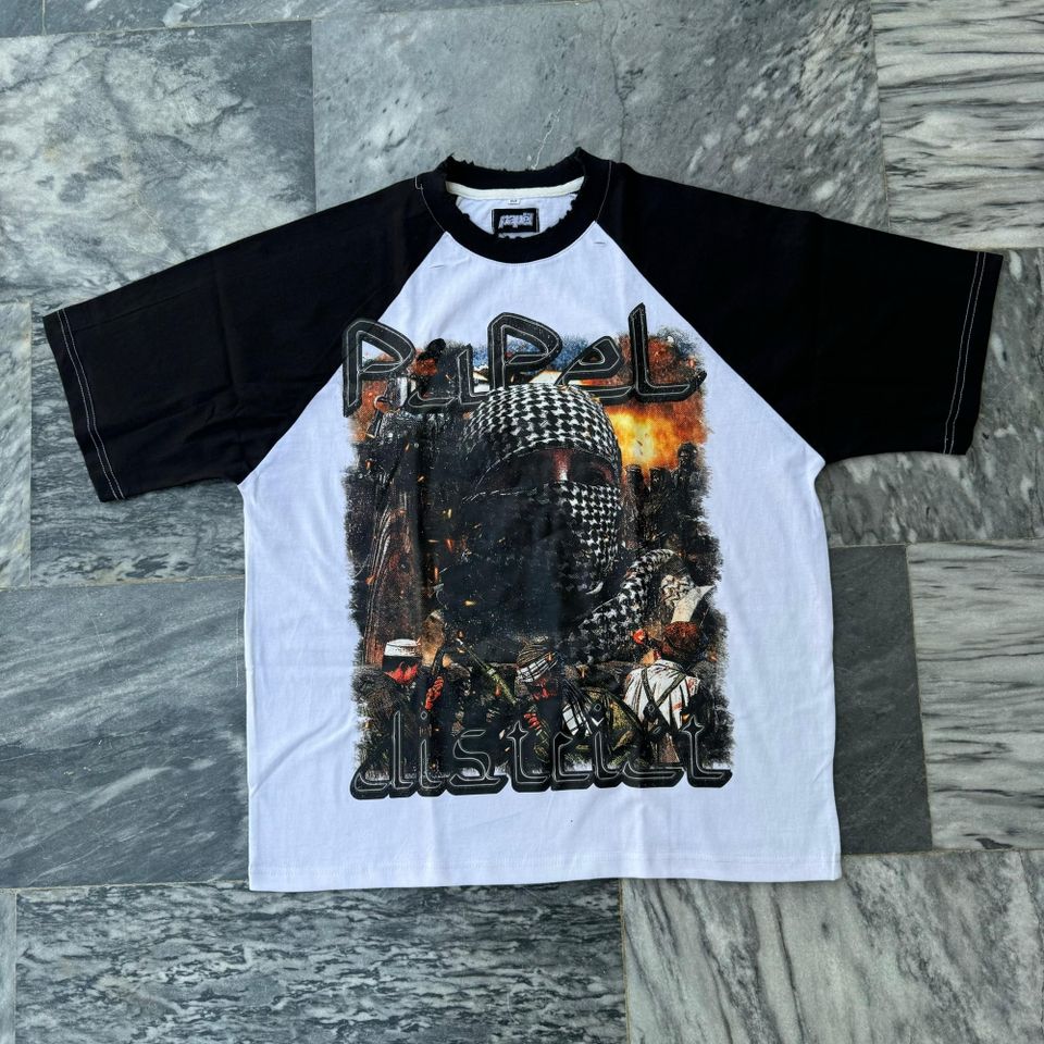 American Raglan Sleeve T-shirts graphiques surdimensionnés vintage pour hommes Heavyweight 100% Cotton Screen Printing Cropped Boxy Style