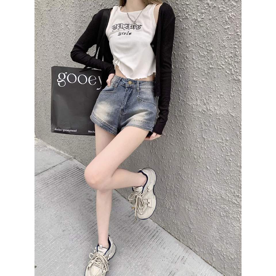American Retro Short en jean taille haute pour femmes, short d'été à taille haute avec élastique serré